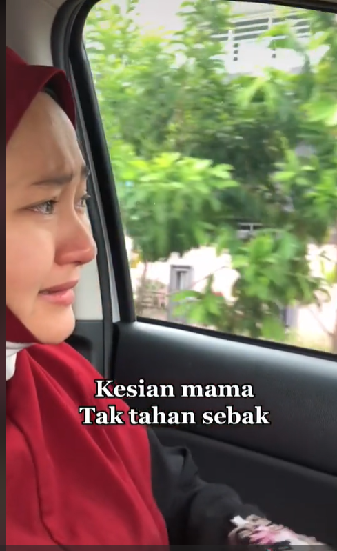 Namun, sebaik saja anak mereka dihantar, si isteri tidak dapat menahan air mata dan terus menangis di dalam kereta.
