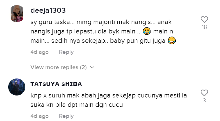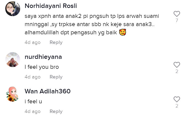 Malah, ramai juga yang berkongsi pengalaman sama mereka apabila mahu menghantar anak kepada pengasuh.