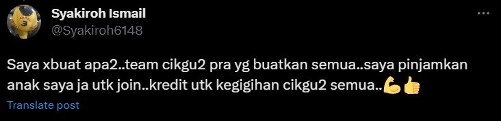 Video tersebut juga telah tersebar ke Twitter dan mendapat respon daripada salah seorang ibu peserta. Dia mengatakan bahawa ibu bapa hanya mendaftarkan anak-anaknya dan kredit harus diberikan kepada cikgu-cikgu peserta.
