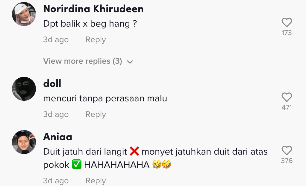 Berikut di bawah adalah antara komen daripada netizen di TikTok: