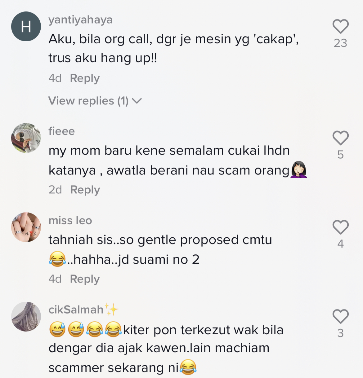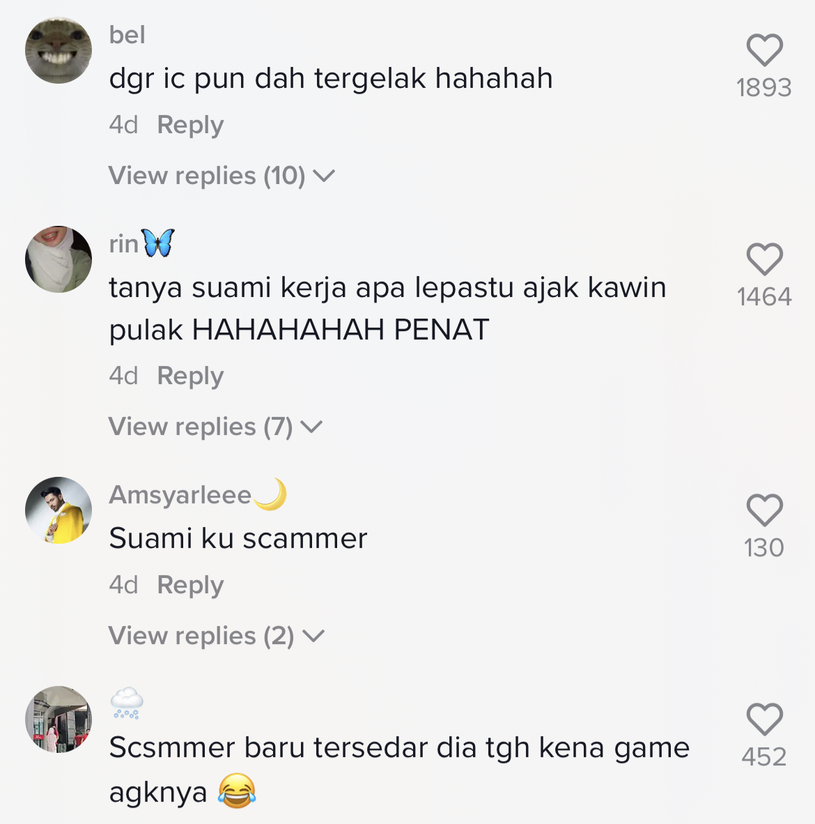 "Kita pun terkejut awak, bila dia ajak kahwin. Lain macam betul scammer sekarang" – Netizen