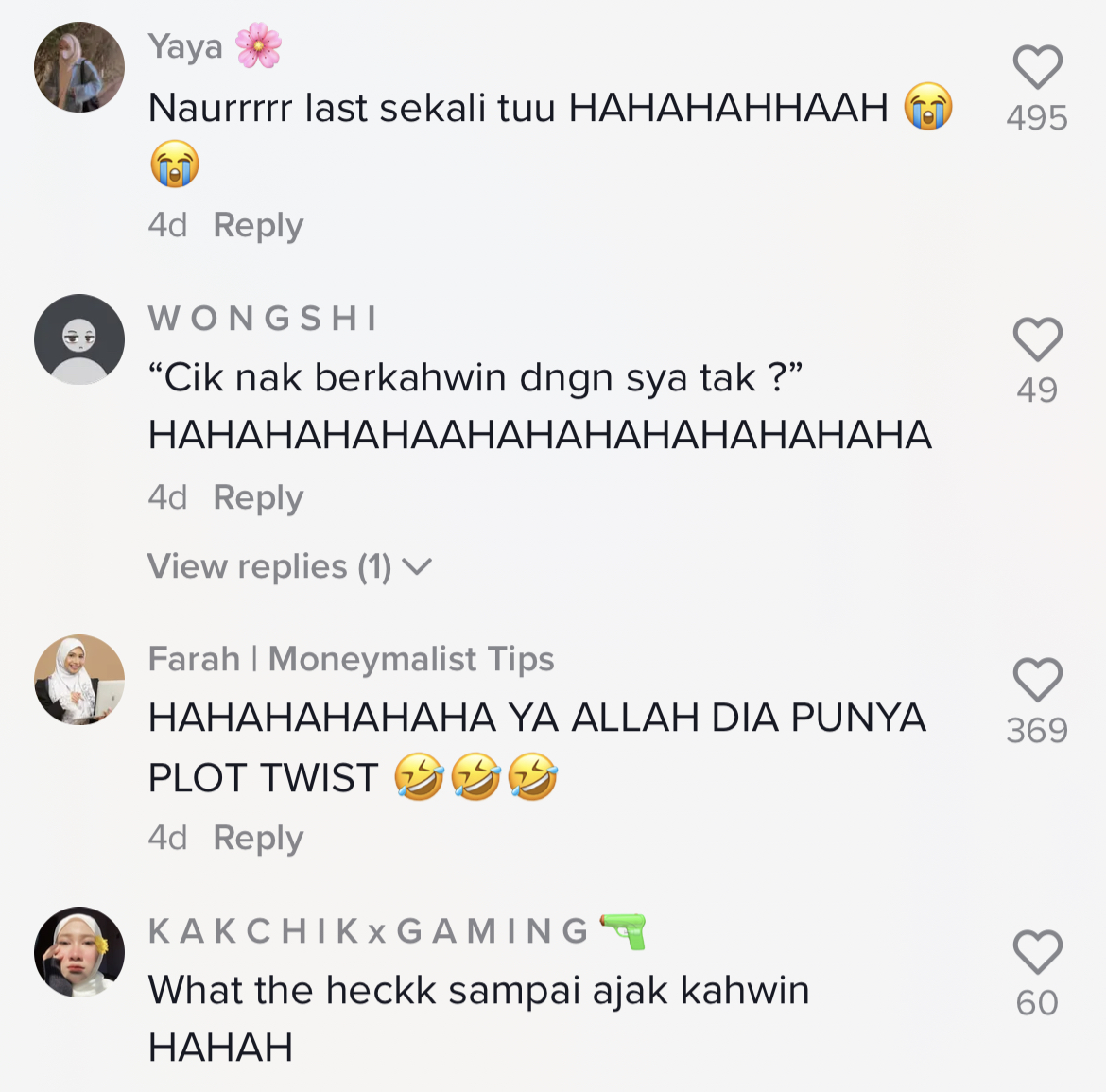 Berikut di bawah adalah antara komen menarik daripada netizen di TikTok: