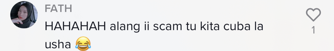 Tinjauan di ruangan komen mendapati rata-rata netizen turut terhibur melihat gelagat wanita itu tidak jadi mengenakan scammer tersebut.