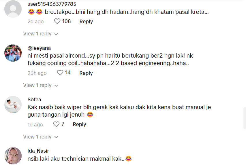 "Husband saya pun technician. Ingatkan dalam kereta suami saya dah pelik, rupanya ada lagi yang pelik. Hahaha" – Netizen