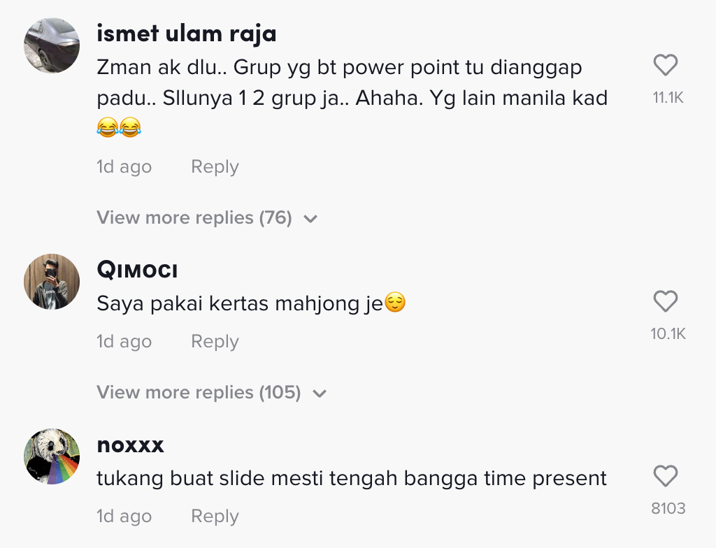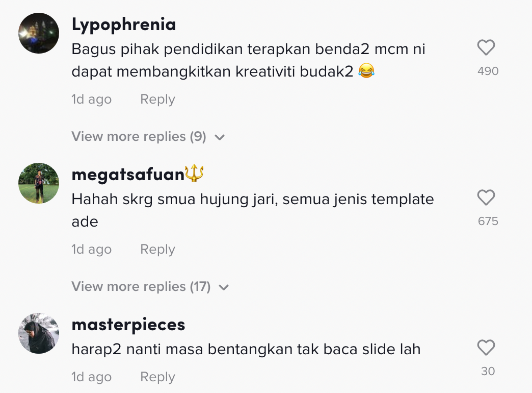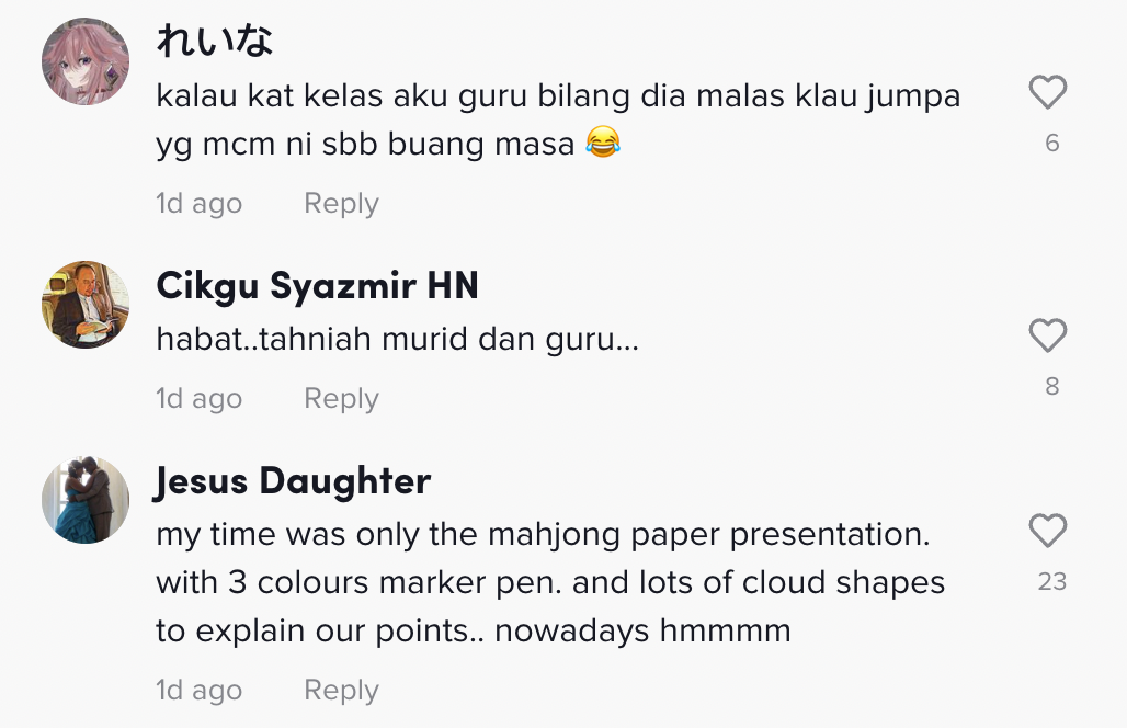 Dalam pada itu, tinjauan di ruangan komen mendapati rata-rata netizen turut memberikan pelbagai reaksi mereka dan mengimbau zaman belajar mereka.