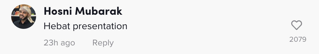 Ketika artikel ini ditulis, video berkenaan telah meraih 2.1M views, 205.7K likes dan 2,363 comments di TikTok.