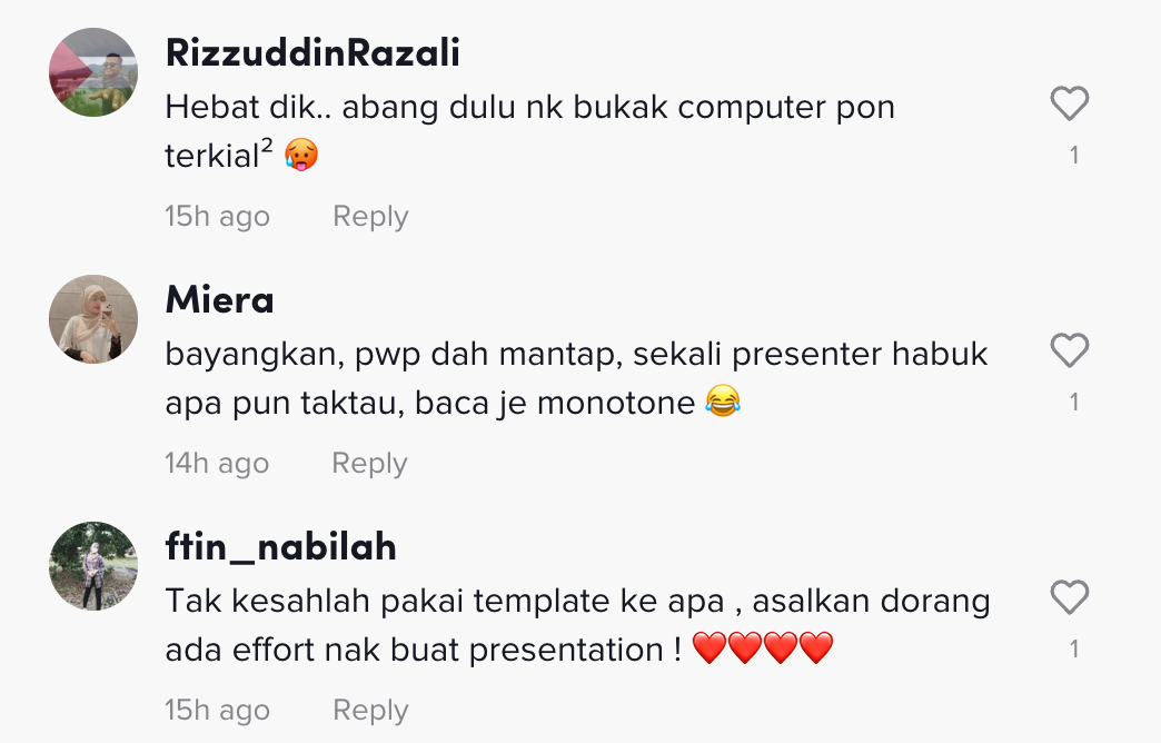 "Tukang buat slide mesti tengah bangga time present" – Netizen
