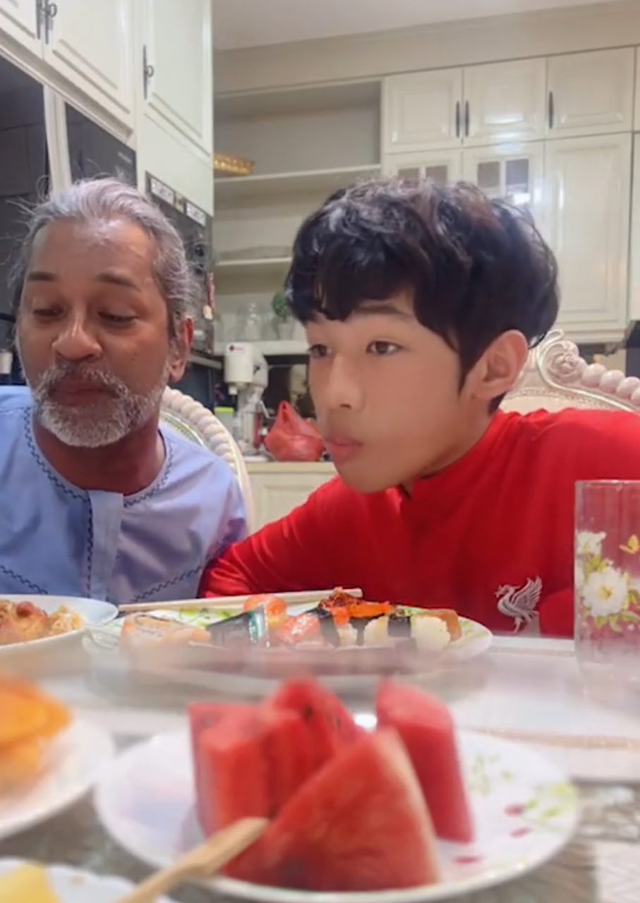 "Assalamualaikum, selamat berpuasa semua, first day bersahur bersama Sky dan pak cik saya @ridzokumura.