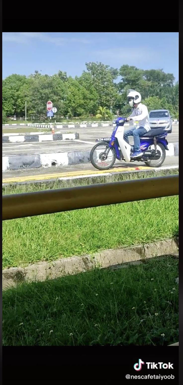 Menerusi video tersebut, kelihatan seorang lelaki sedang berada di salah sebuah institut latihan memandu untuk belajar menaiki motosikal.