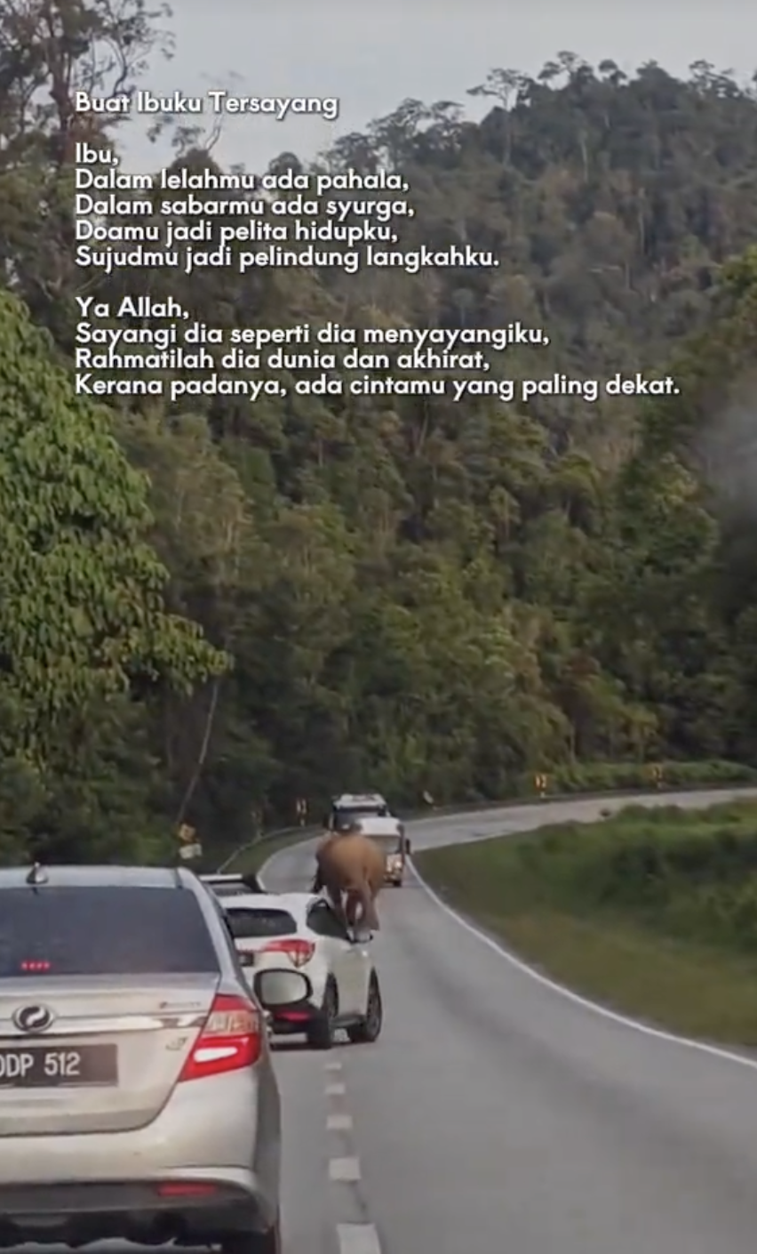 Sebelum ini tular video memaparkan seekor gajah betina cuba 'menolak' lori yang dipercayai melanggar mati anak gajah jantan di Jalan Raya Timur-Barat Gerik-Jeli sehingga mengundang sebak dalam kalangan orang ramai. Keadaan ibu gajah itu ternyata membuatkan ramai berasa sedih.