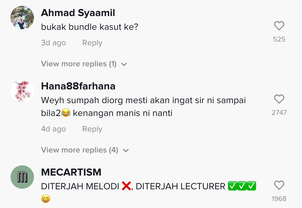 Berikut di bawah adalah antara komen daripada netizen di TikTok: