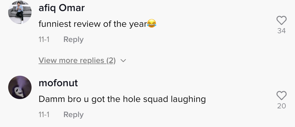 Sementara itu, tinjauan di ruangan komen mendapati rata-rata netizen turut merasa terhibur mendengar review lelaki tersebut.