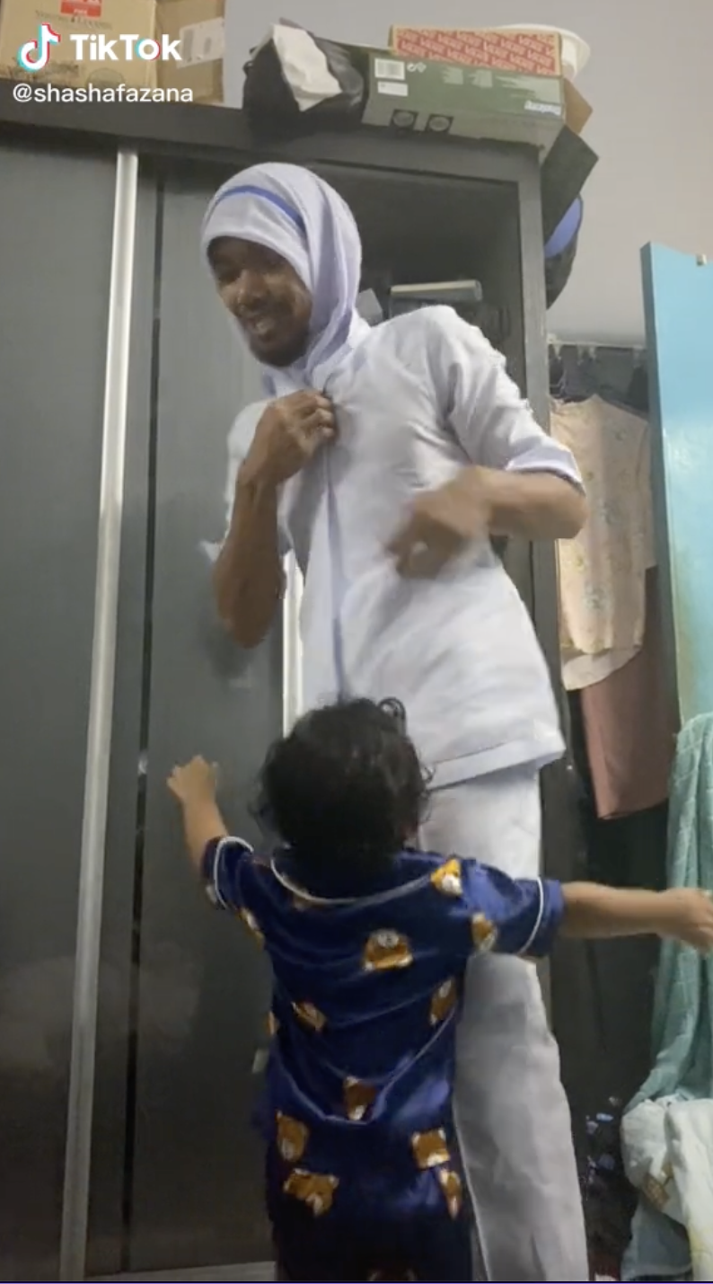 Menerusi video yang dimuat naik oleh @shashafazana di TikTok, kelihatan rakaman menunjukkan seorang ayah dan anaknya sedang berada di dalam sebuah bilik.