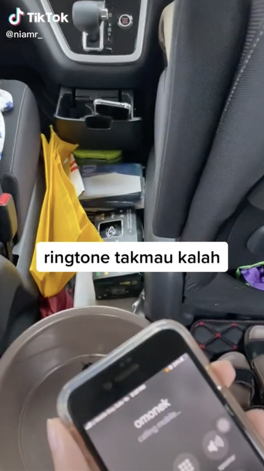 Namun, dia sengaja menelefon si ibu walaupun berada di dalam kereta yang sama untuk mendengar ringtone ibunya.