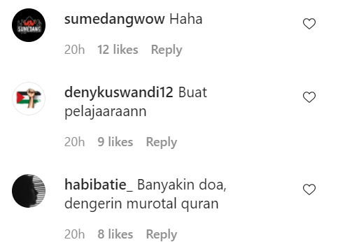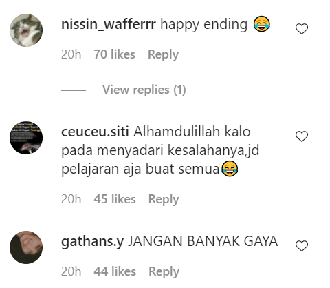 Berikut di bawah adalah antara komen netizen di Instagram: