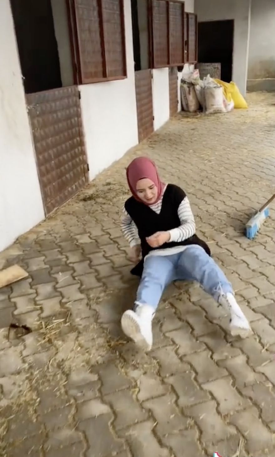 Namun, semasa dia sedang memegang dan memeluknya, secara tiba-tiba kepala unta itu menepisnya menyebakan dia terjatuh. Situasi itu membuatkan dia terkejut dan menunjukkan reaksi sakitnya akibat daripada itu.