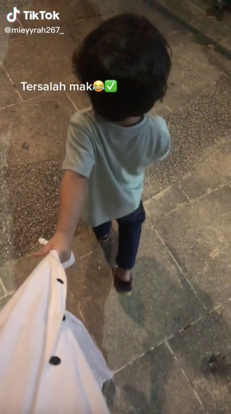 Menerusi video yang dimuat naik oleh @mieyyrah267_ di TikTok, rakaman menunjukkan seorang budak lelaki sedang menarik baju seorang wanita.