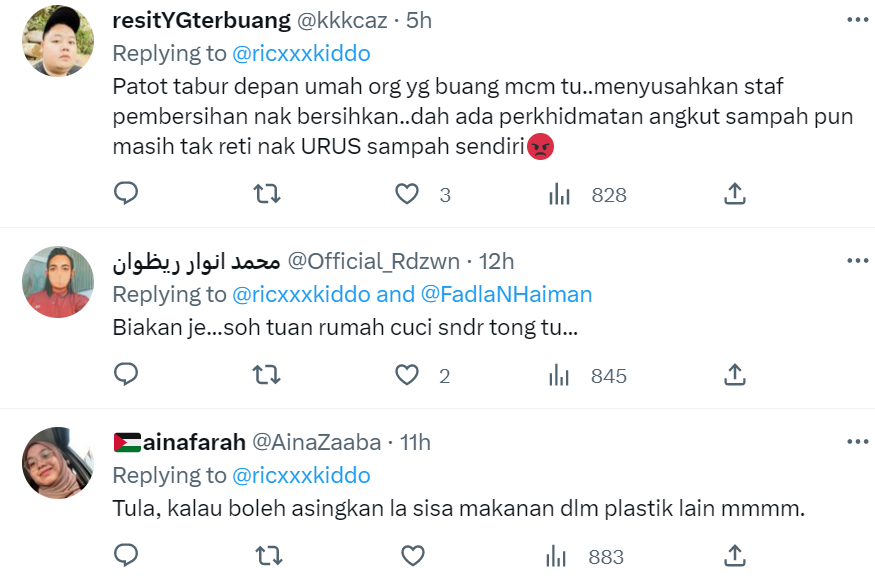 "Itulah, kalau boleh asingkan lah sisa makanan dalam plastik lain" – Netizen