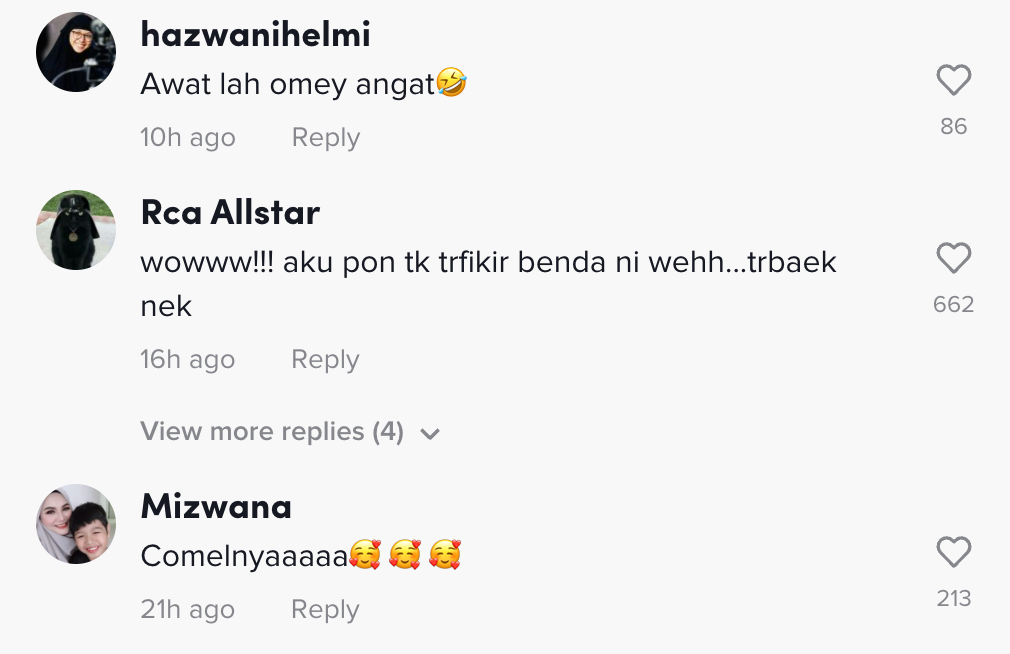 Berikut di bawah adalah antara komen menarik daripada netizen di TikTok: