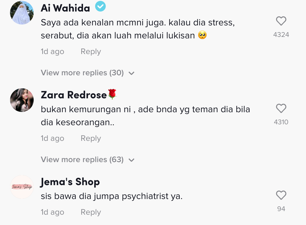 "Saya ada kenalan macam ni juga. Kalau dia stress, serabut, dia akan luah melalui lukisan" – Netizen