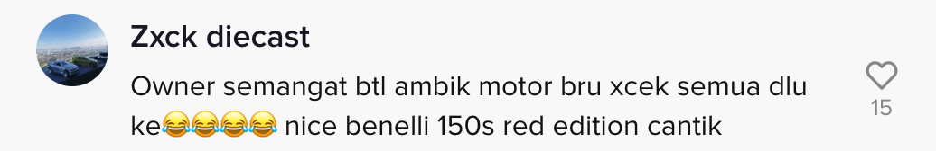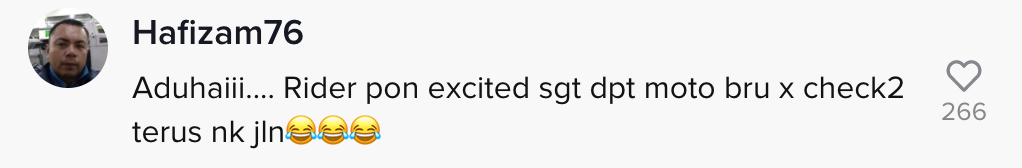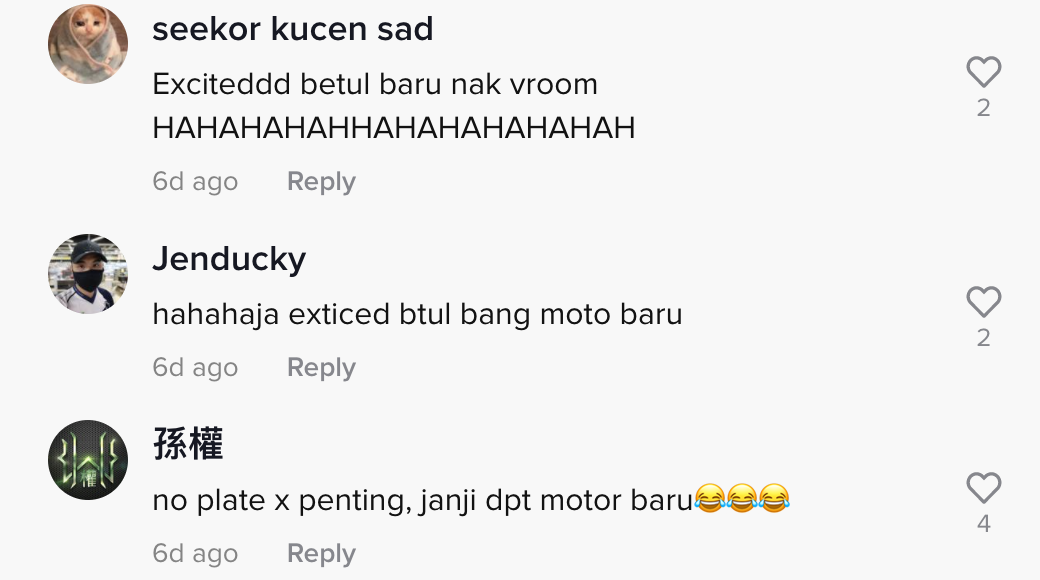 Dalam pada itu, tinjauan di ruangan komen mendapati rata-rata netizen turut terhibur melihat situasi tersebut. Malah, ramai yang menganggap lelaki itu juga tidak menyedari kerana terlalu teruja mendapat motosikal baru.