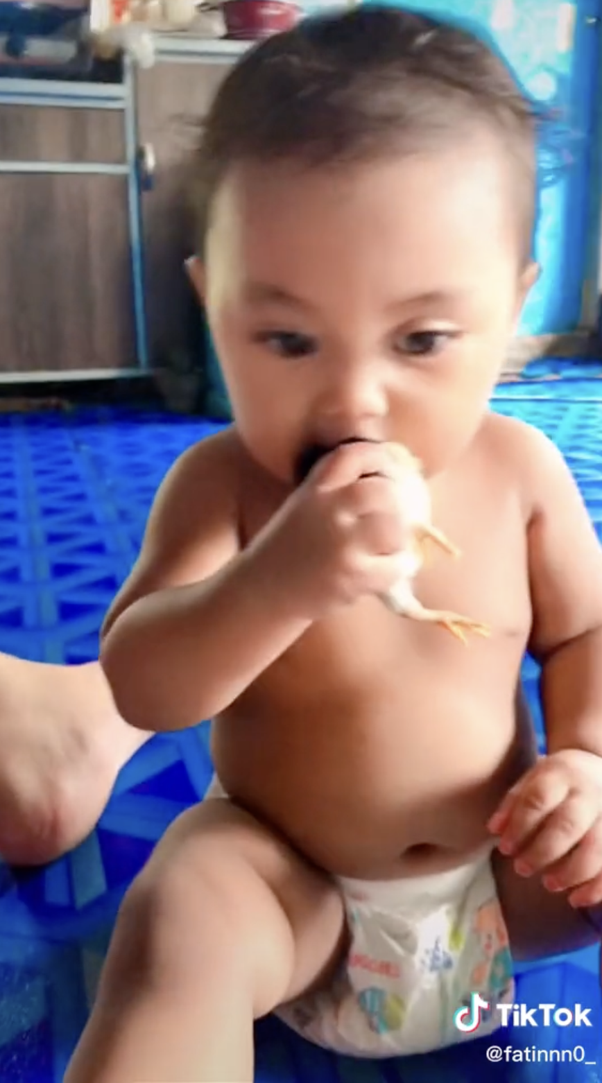 Sama seperti video di TikTok ini apabila seorang budak kecil mahu makan anak ayam hidup telah mencuit hati ramai.