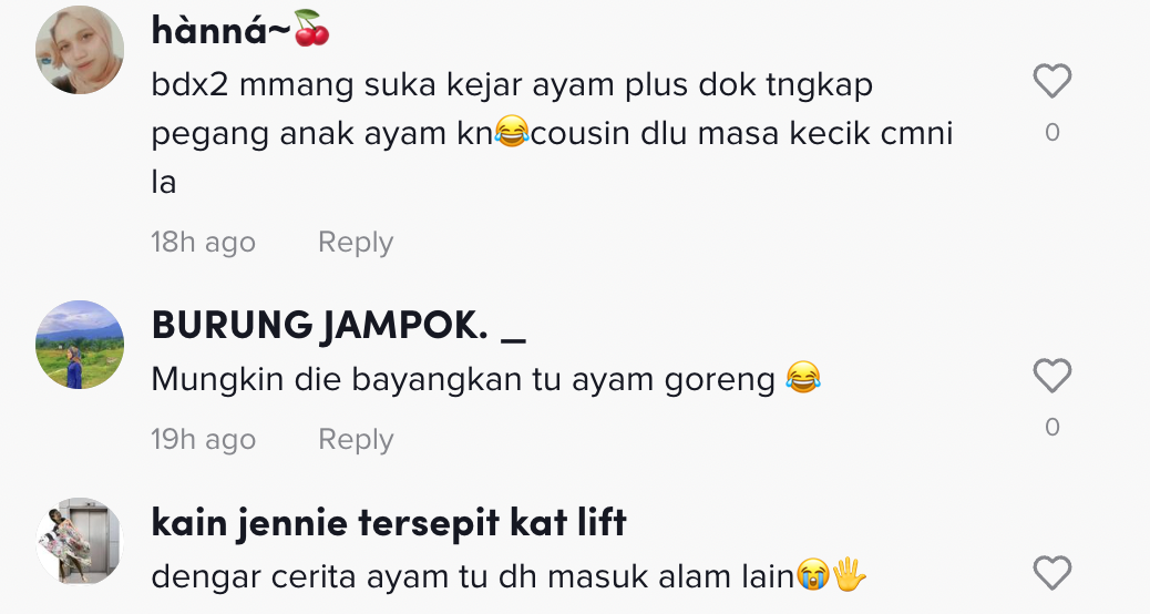 Namun, apa yang lebih mencuit hati ramai adalah dia dilihat mahu memakan anak ayam tersebut dan sempat memasukkannya ke dalam mulut.