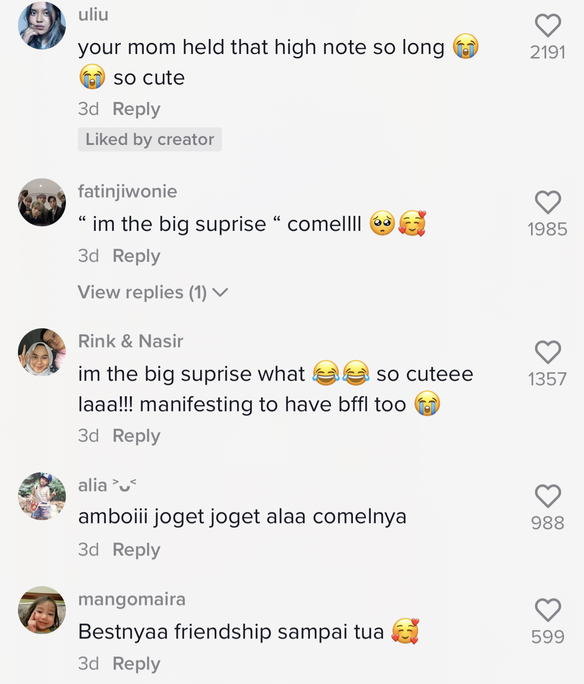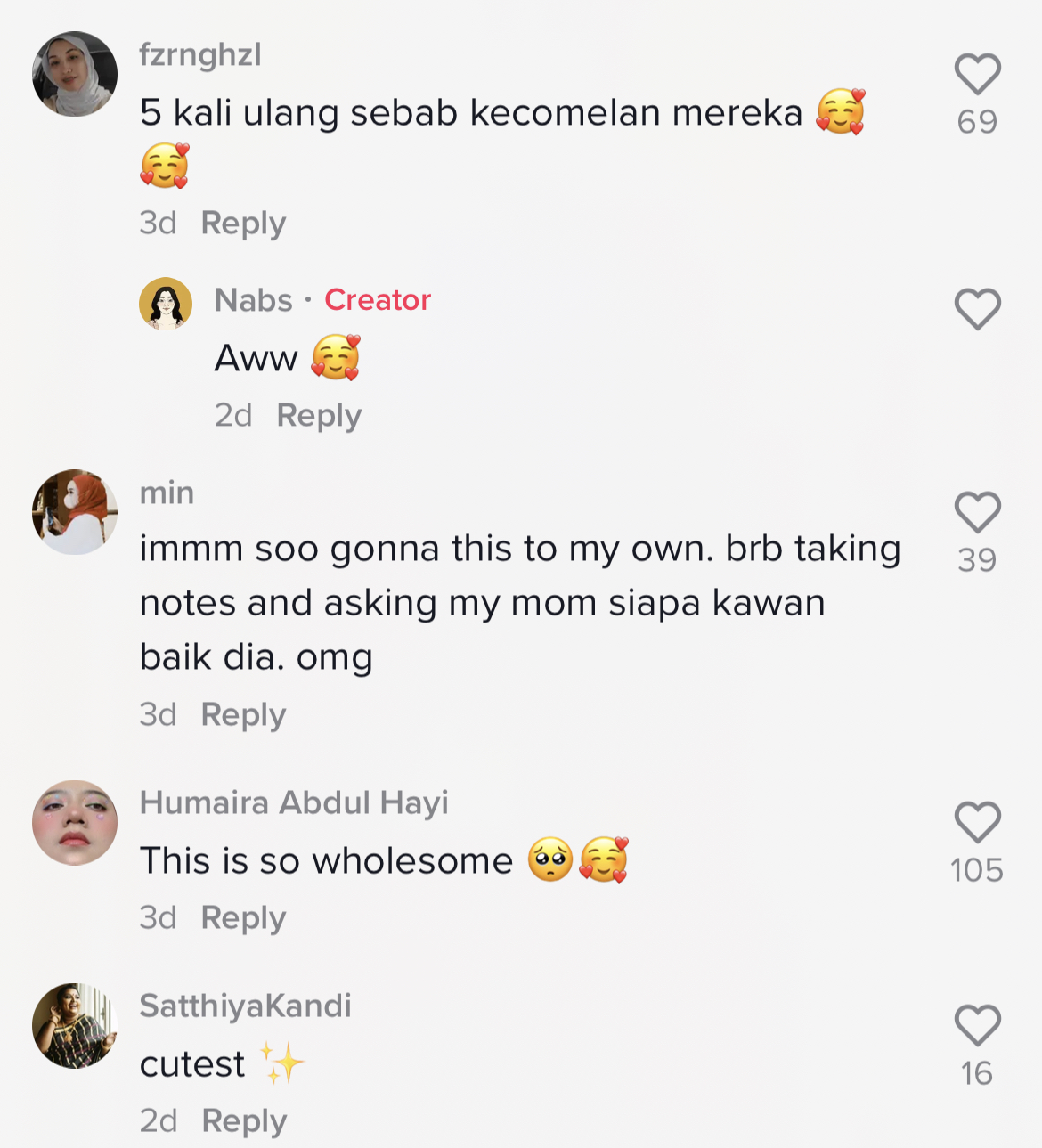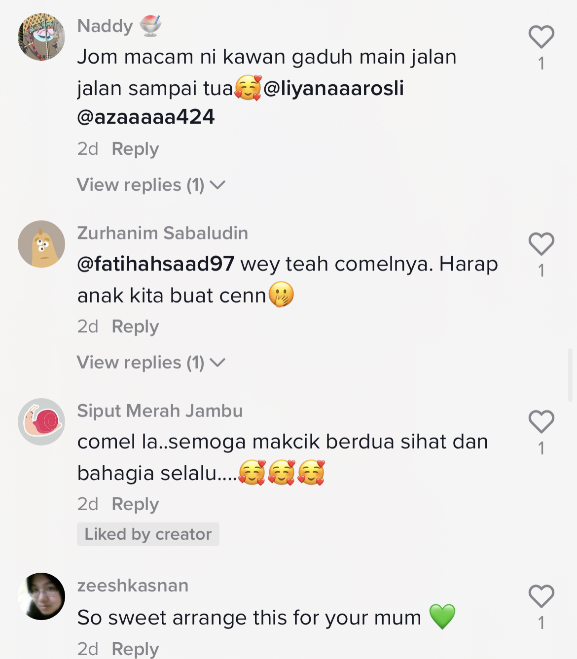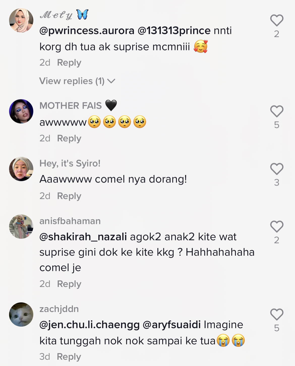 Rata-rata netizen turut terhibur melihat gelagat dua orang makcik itu. Ada juga netizen yang mengharapkan anak-anak mereka membuat kejutan yang sama.