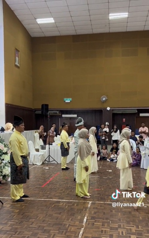 Menerusi video yang dimuat naik oleh @liyanaaa21_ di TikTok, kelihatan seorang individu merakam video sebuah pasangan sedang bersilat di majlis kahwin sambil dipandang oleh pasangan pengantin.