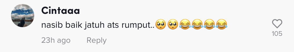 "Nasib baik dia jatuh atas rumput" – Netizen