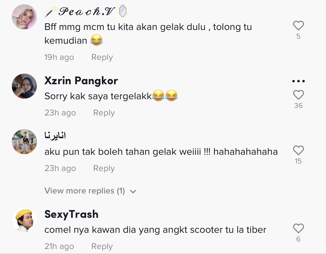 Namun, lain pula yang terjadi dengan sebuah video di TikTok ini apabila seorang gadis terbabas jatuh semasa bermain skuter bersama rakannya telah mencuri tumpuan ramai.