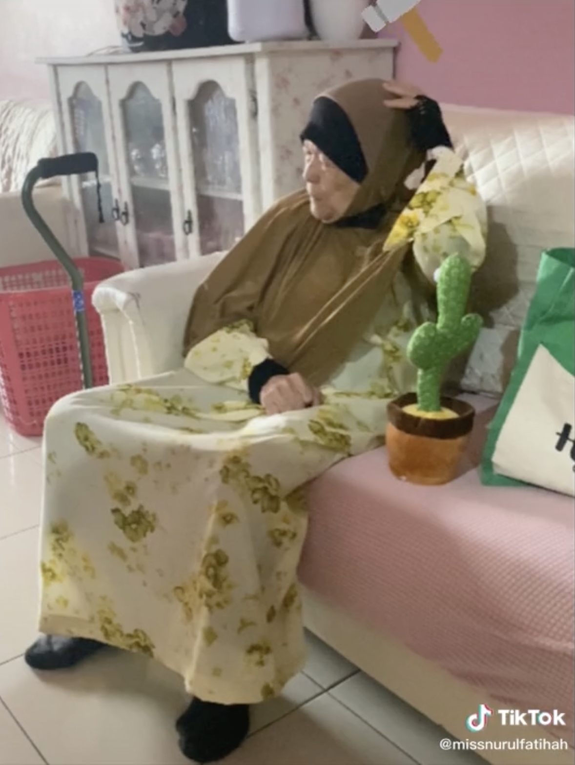 Menerusi video tersebut, kelihatan seorang wanita merakam gelagat neneknya yang sedang bermain dengan permainan viral iaitu dancing cactus di rumah.