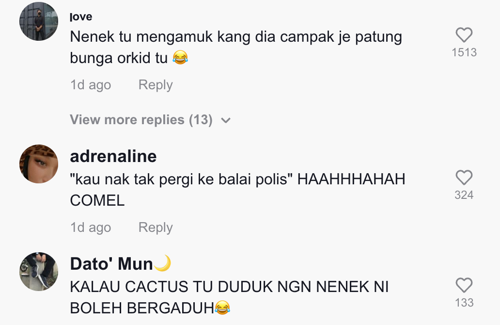 Dalam pada itu, tinjauan di ruangan komen mendapati rata-rata netizen turut merasa terhibur melihat gelagat nenek tersebut bersama dancing cactus itu.