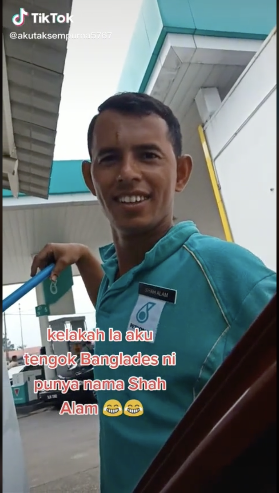 Kejadian itu membuatkan dia tergelak kecil sambil bergurau menanyakan beberapa soalan kepada pekerja berkenaan kerana namanya Shah Alam.