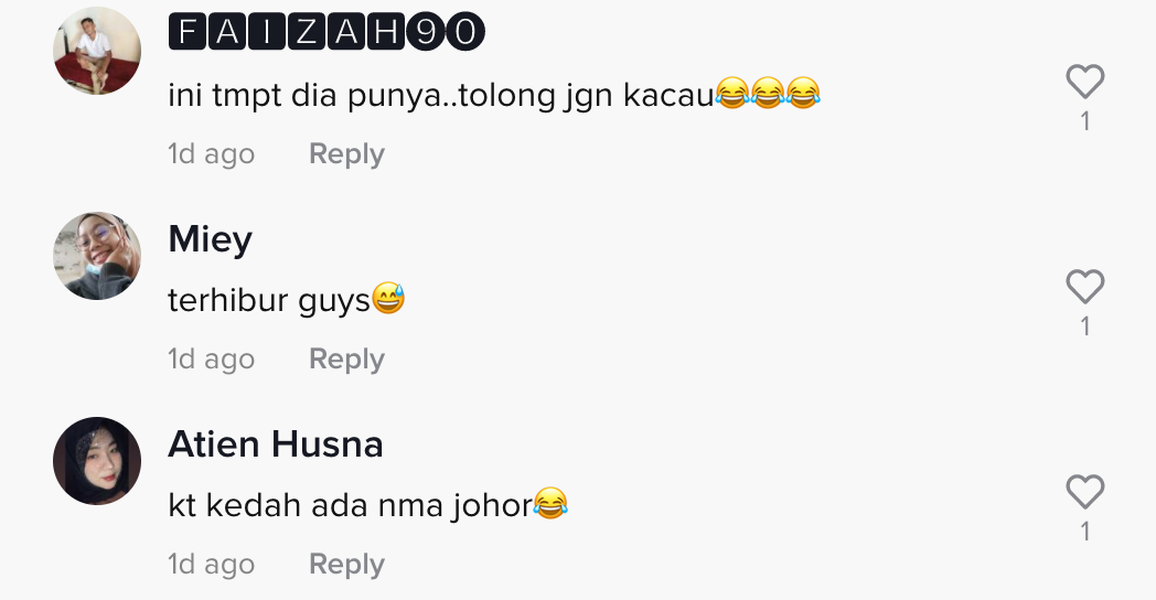 Dalam pada itu, tinjauan di ruangan komen mendapati rata-rata netizen turut terhibur melihat video terbabit. Malah, ada juga yang sempat berkongsi pengalaman sama mereka.