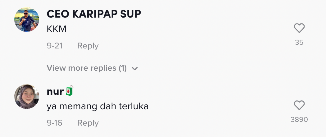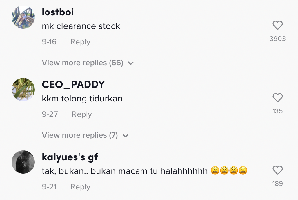 Berikut di bawah adalah antara komen daripada netizen di TikTok: