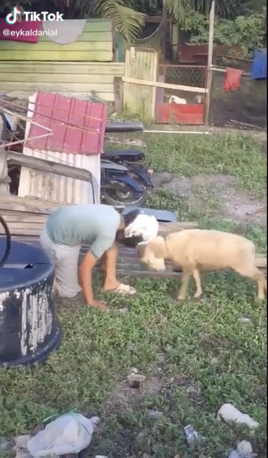 Sama seperti video yang tular di TikTok ini apabila aksi seorang lelaki lelaki 'berlawan' dengan seekor kambing telah mencuri perhatian ramai.
