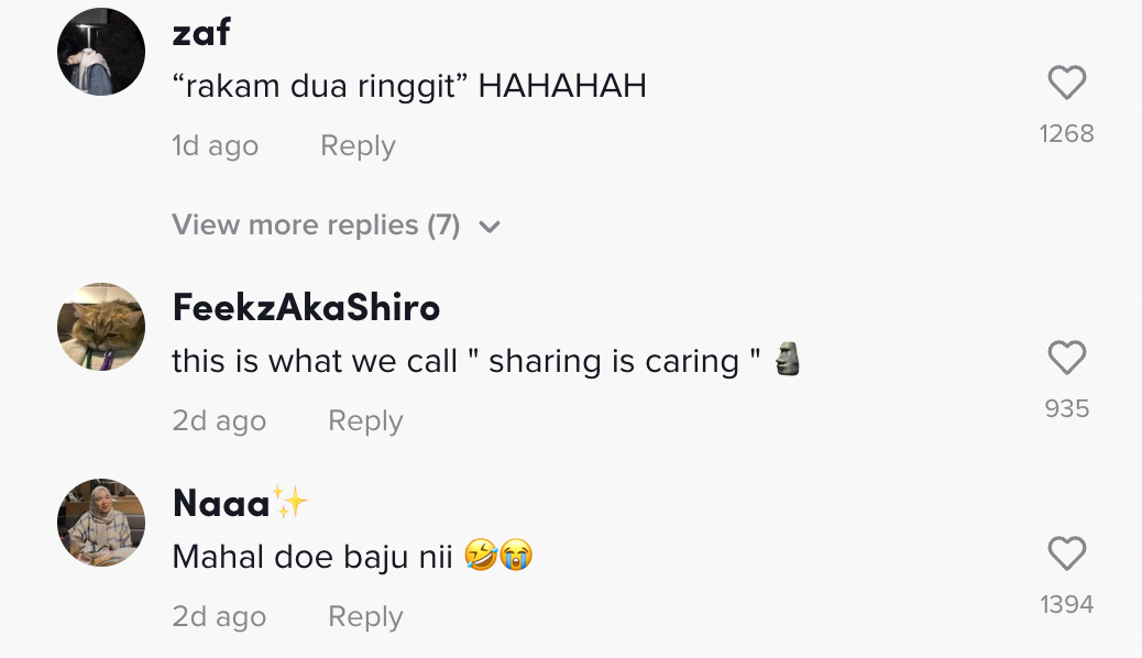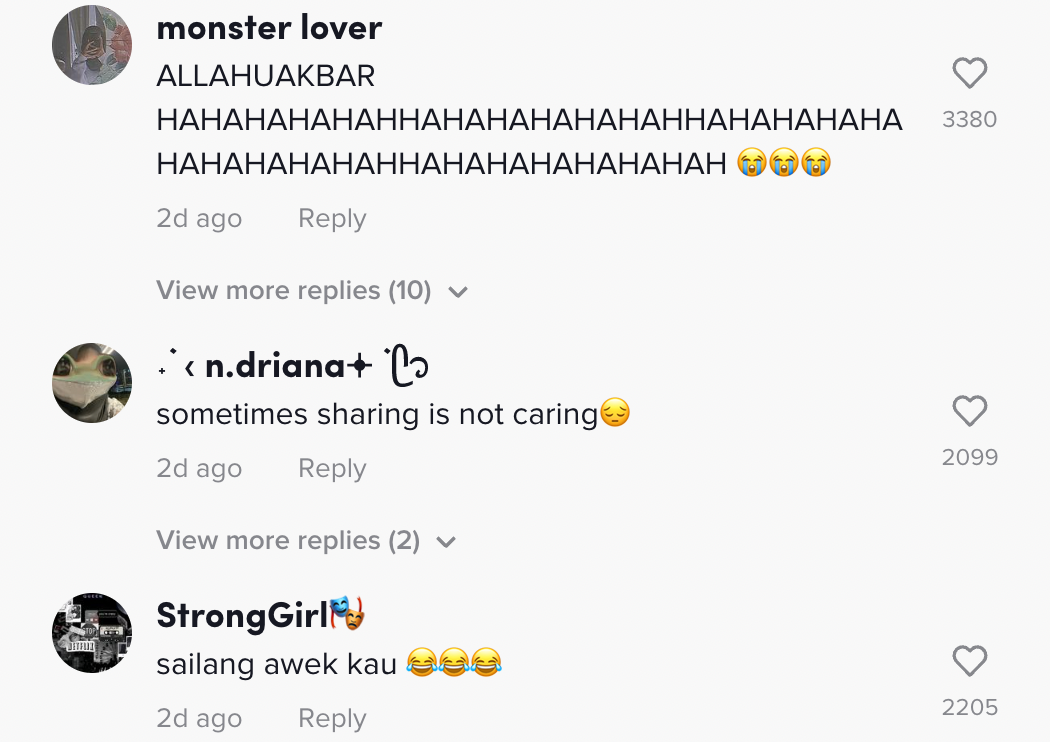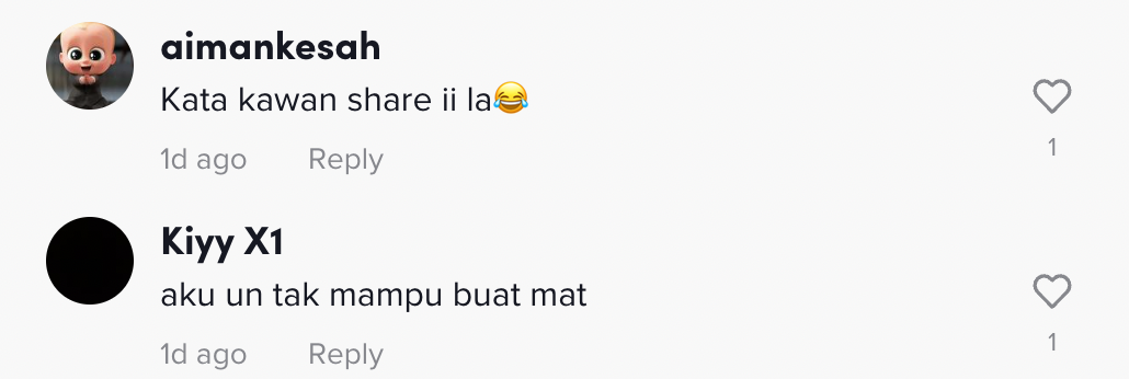 Berikut di bawah adalah antara komen daripada netizen di TikTok: