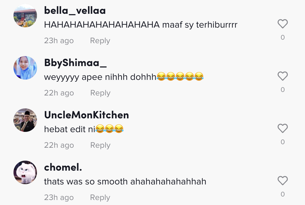 Dalam pada itu, tinjauan di ruangan komen mendapati rata-rata netizen turut terhibur melihat suntingan itu.