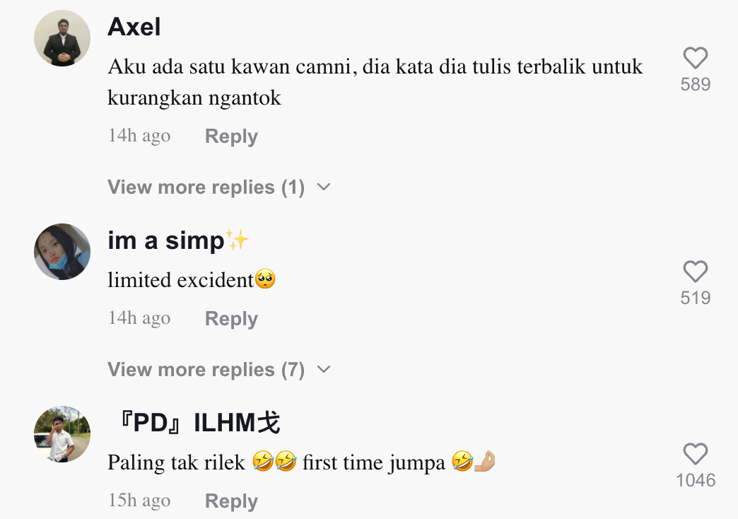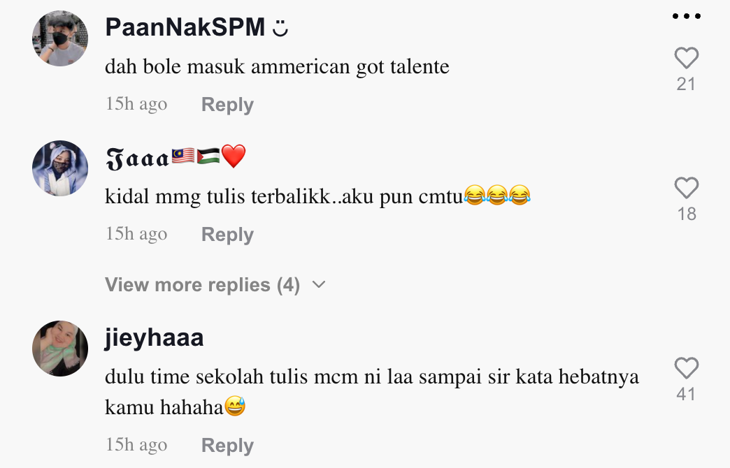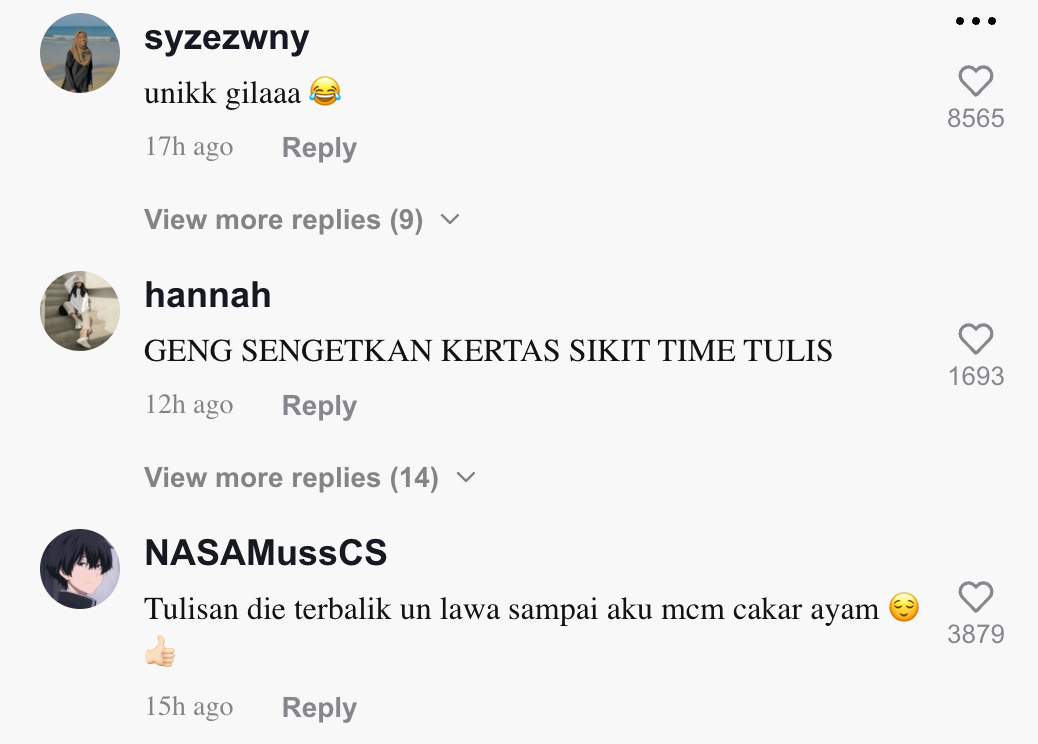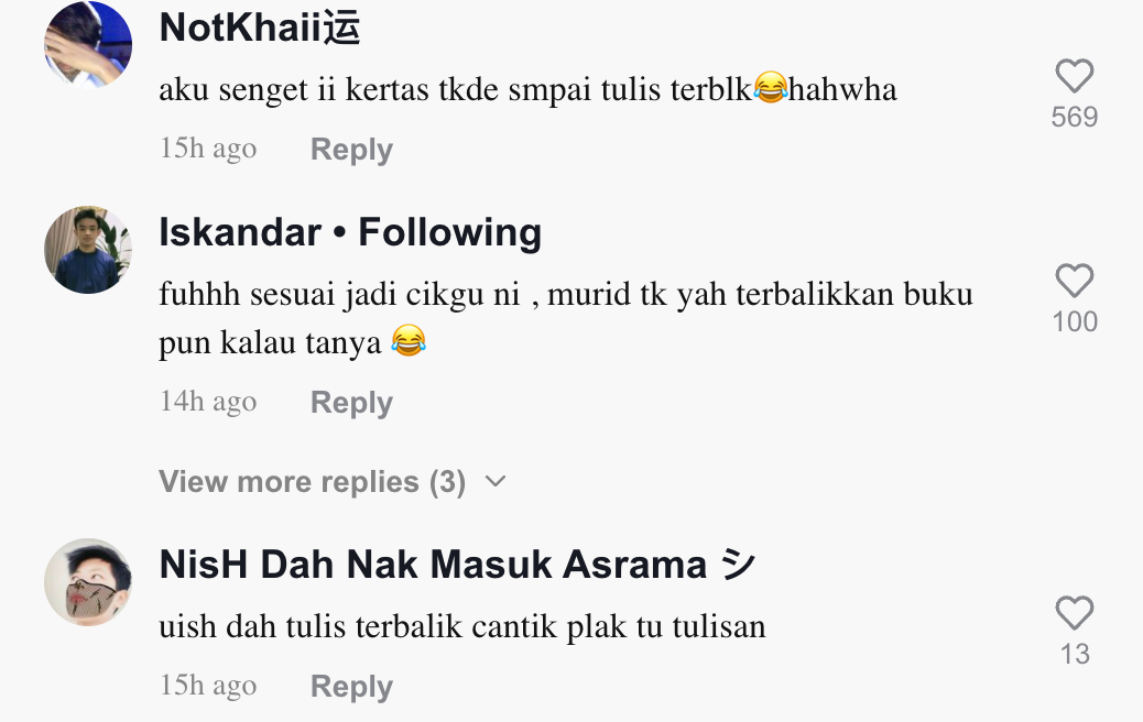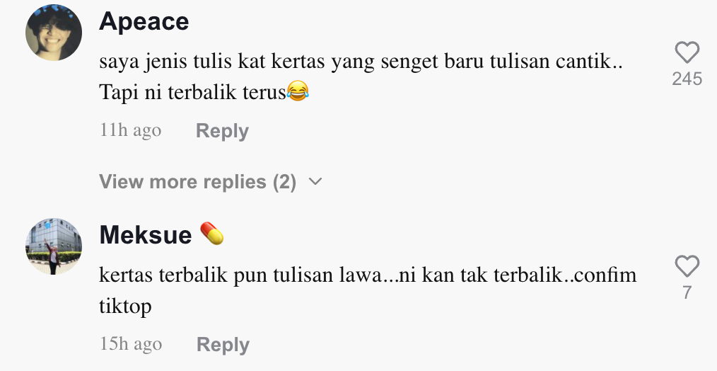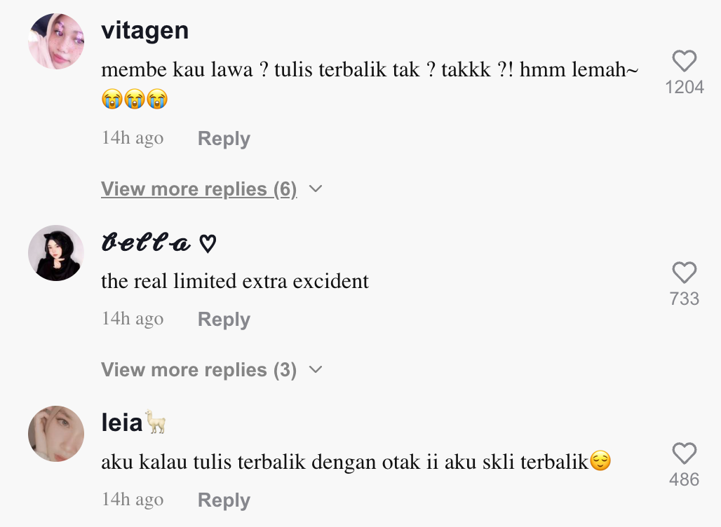 "Aku kalau tulis terbalik dengan otak-otak aku sekali terbalik" – Netizen