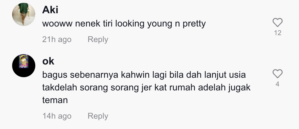 Dalam pada itu, tinjauan di ruangan komen mendapati rata-rata netizen turut mengucapkan tahniah di atas pernikahan atuknya itu.