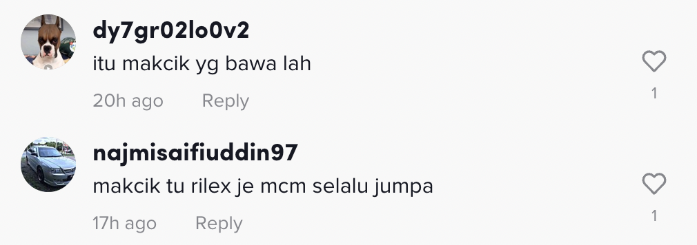 Sementara itu, tinjauan di ruangan komen mendapati ada netizen yang memberitahu rupa-rupanya anjing itu sudah mengenali mak cik tersebut.