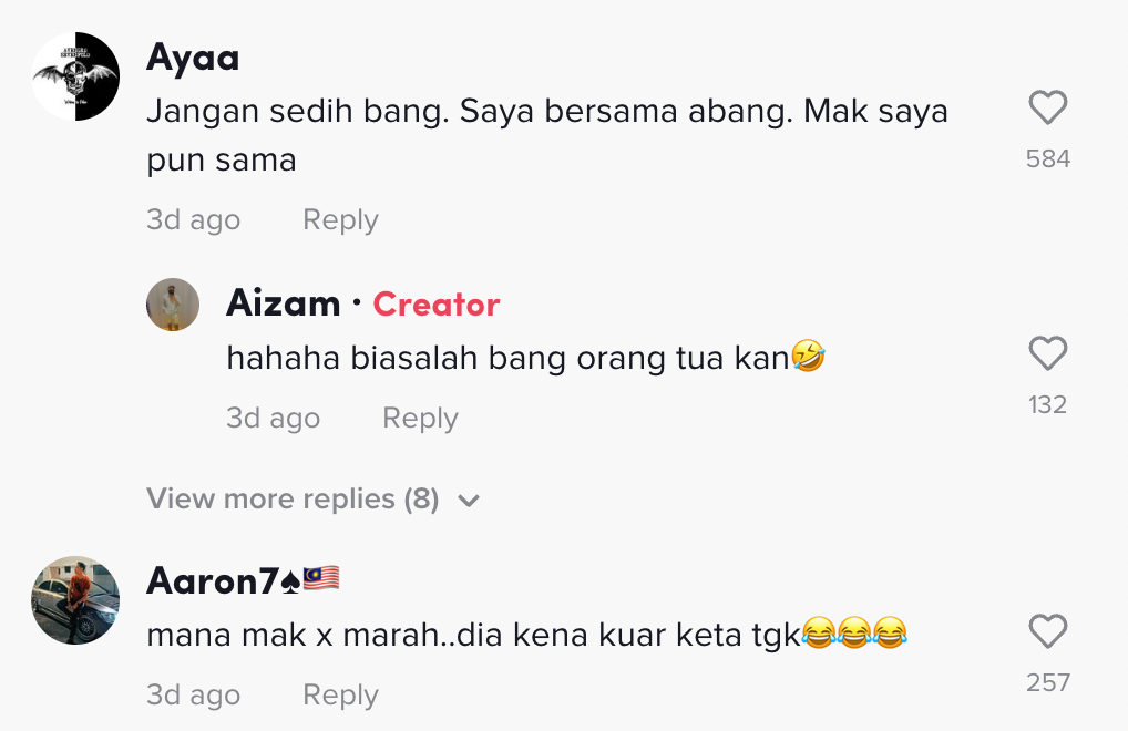 Dalam pada itu, tinjauan di ruangan komen mendapati rata-rata netizen turut merasa terhibur dan berkongsi situasi yang sama.