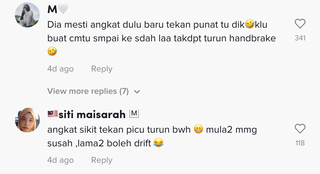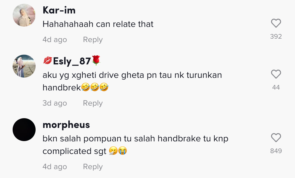 [VIDEO] Susah Nak Turunkan Hand Brake Kereta, Gadis Ini Buat Ramai Boleh Relate