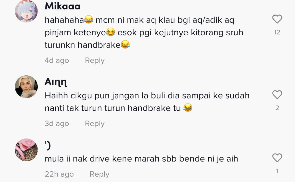 Gigih nak tarik hand brake sebab ketat