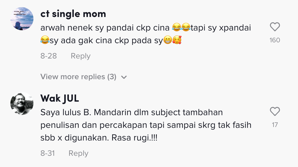 Berikut di bawah adalah antara komen daripada netizen di TikTok: