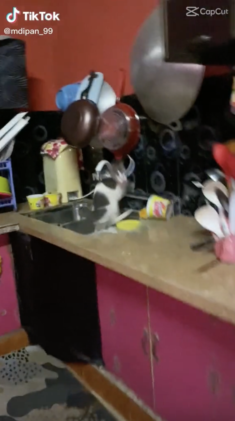 Menerusi video yang dimuat naik oleh @mdipan_99 di TikTok, kelihatan seekor kucing sedang berlari tanpa hala tuju di dalam sebuah rumah.