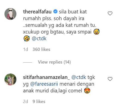 Berikut di bawah adalah komen-komen menarik daripada warganet di Instagram: