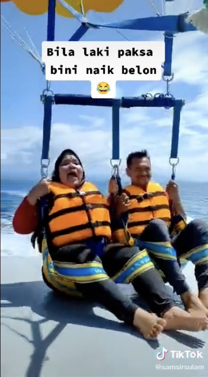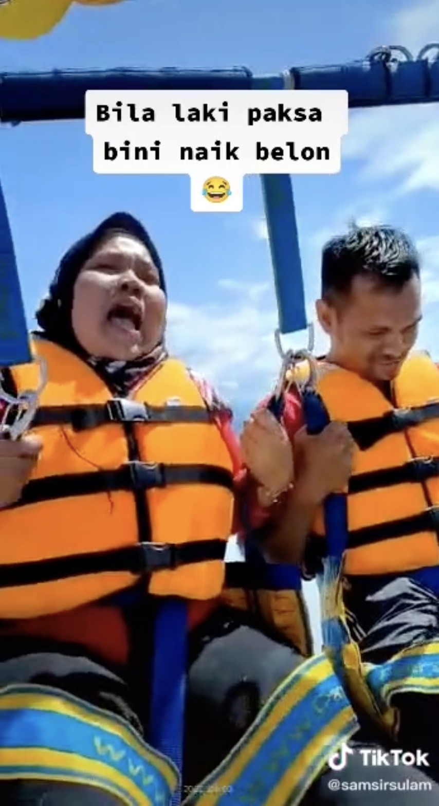 “Mana-Mana Rancak” – Gelagat Isteri Cuak Suami Ajak Naik Parasailing Ini Undang Ketawa