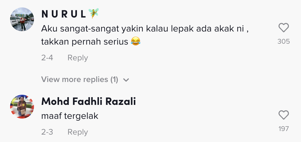 Berikut di bawah adalah antara komen menarik daripada netizen di TikTok: